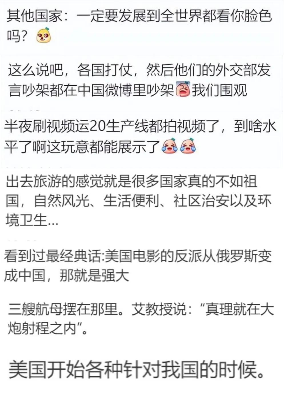 后来慢慢长大了,看着城市里拔地而起的高楼,看着新闻里航母出海,火箭发射,看着爷爷奶奶都熟练的用上了智能手机,更多外国友人来旅游的时候,心里才渐渐明白过来,原来现在我们习以为常的便利、安稳,背后藏着的,就是“强大”啊。